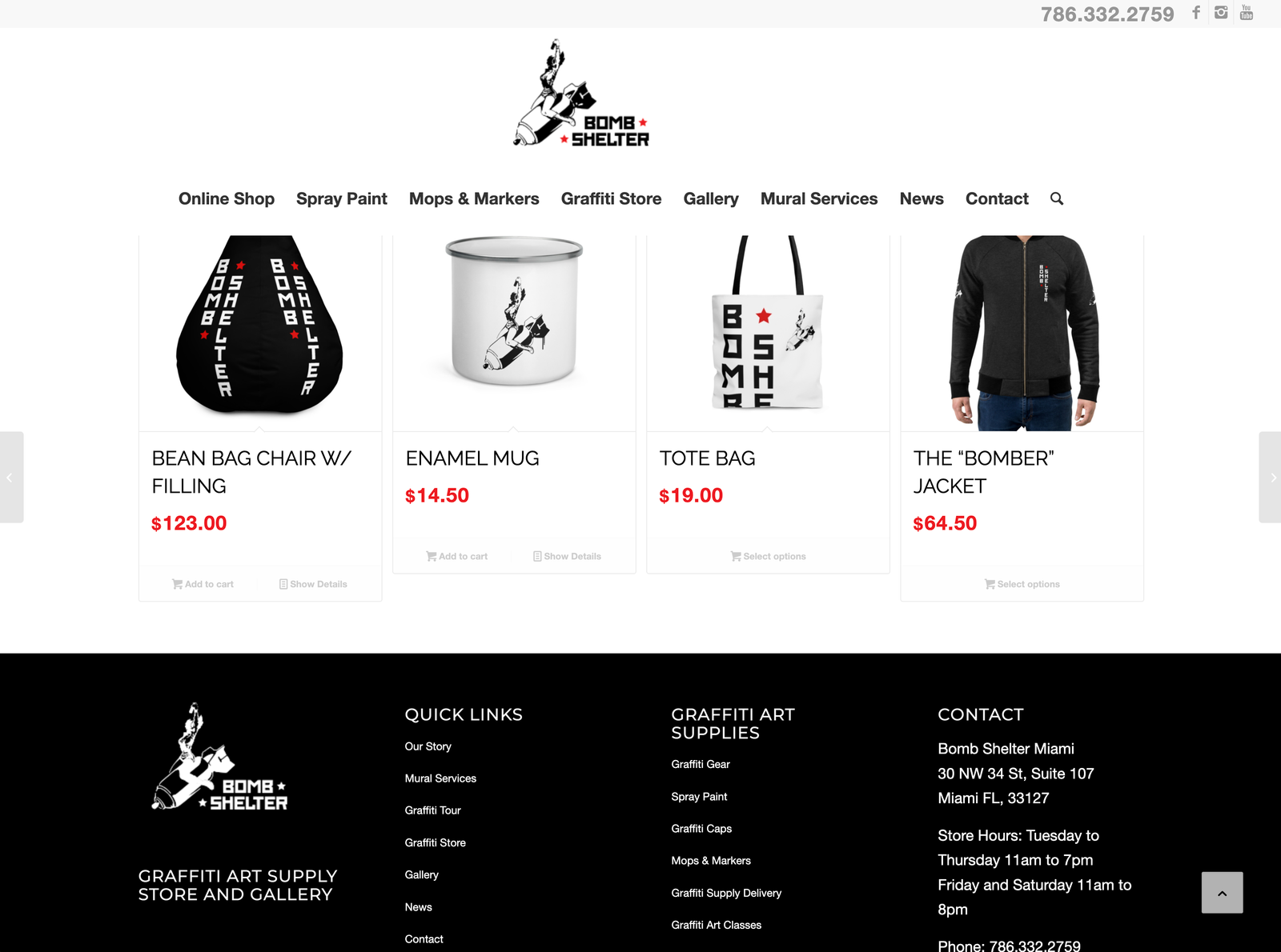 From 2018 to 2022, One Sun Media partnered with Bomb Shelter Inc. to lead consulting, branding, design, and full web development. The team built a custom WooCommerce store on WordPress, integrating Facebook for community engagement and Printful for on-demand merchandise fulfillment. Every element—from layout to product display—was crafted to reflect the energy and precision of the street art scene, with a focus on intuitive navigation and mobile responsiveness.